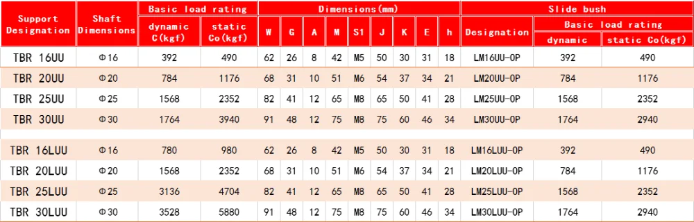 SBR40LUU | SBR50LUU | TBR16UU | TBR20UU |