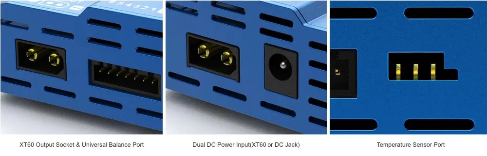 Коробка для сока поставляется с алгоритмом зарядки для наиболее распространенных химикатов батарей: LiPo, li-ion, LiHV, LiFe, NiMH, NiCD и Pb (свинцово-кислотная).