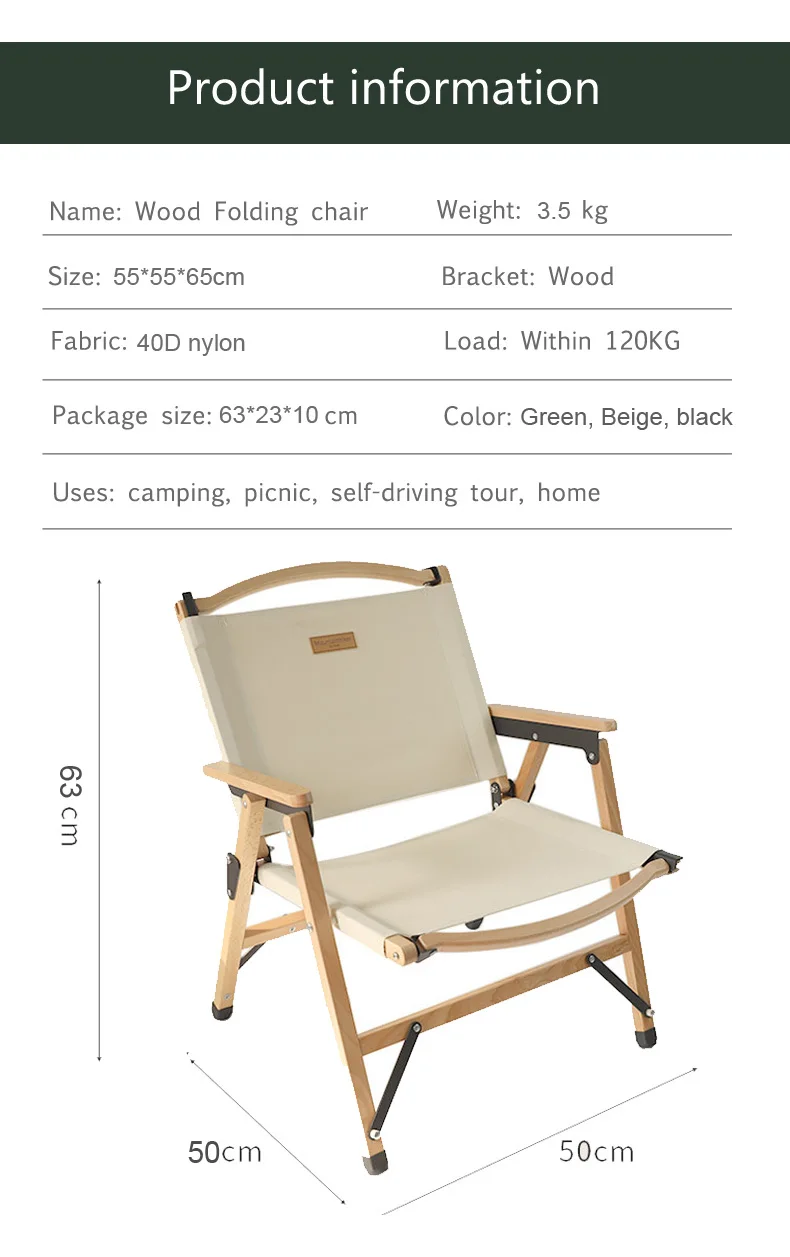 Название: деревянный складной стул Вес: 3,5 кг Размер: 70*48*52*55 см Кронштейн: дерево Ткань: двухслойная Кордура Нагрузка: в пределах 120 кг Размер посылка: 61*53,5*10 см Цвет: зеленый Характеристики: складной и портативный