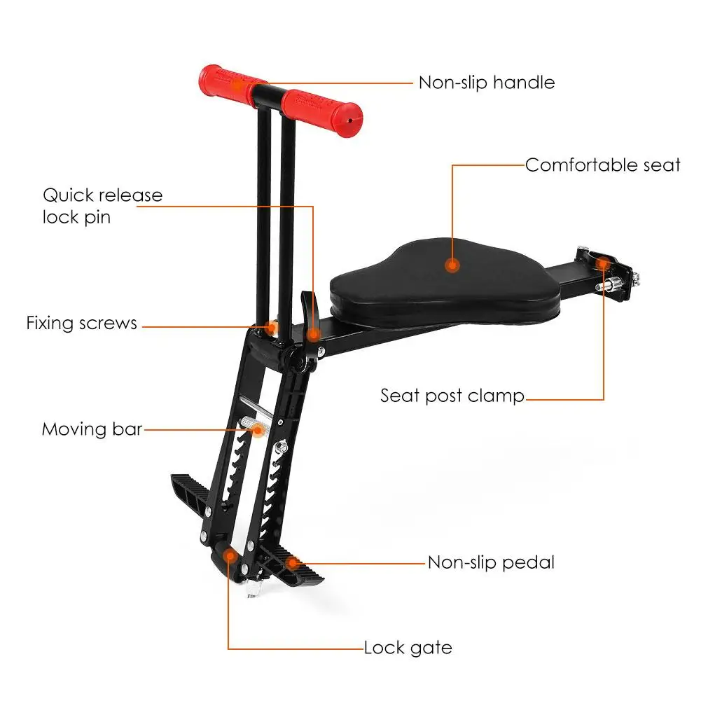 1. Безопасно и удобно: переднее сиденье велосипеда позволяет следить за своим ребенком и дорогой. Толстая стеганая подушка для оптимального комфорта. И Велосипедное Сиденье имеет нескользящие поручни для лучшего сцепления для повышения стабильности и безопасности. Педали обеспечивают безопасный отдых для ног ваших детей.2. Простота установки: детское сидение для мотоцикла легко устанавливается на велосипед, никаких инструментов не требуется. И подходит для горных велосипедов, гибридных велосипедов, фитнес велосипеды.3. Переднее Крепление сиденья: детское сидение для мотоцикла имеет переднюю конструкцию, лучший вид и более приятный для езды на велосипеде для ребенка, И это детское Велосипедное Сиденье устойчиво, чтобы обеспечить безопасность вашего ребенка в любой возможной ситуации.4. Удобный и складной: детское сидение для мотоцикла складывается и легкий для удобного хранения и транспортировки.5. Противоскользящие Поручни: детское сидение для мотоцикла устанавливается спереди, с противоскользящими поручнями, а также Педалями и более подробной конструкцией, чтобы предоставить вам и вашему ребенку лучший опыт вождения. И детское сидение для мотоцикла имеет прочную трубку из алюминиевого сплава с максимальным весом 20 кг (44 фунта).