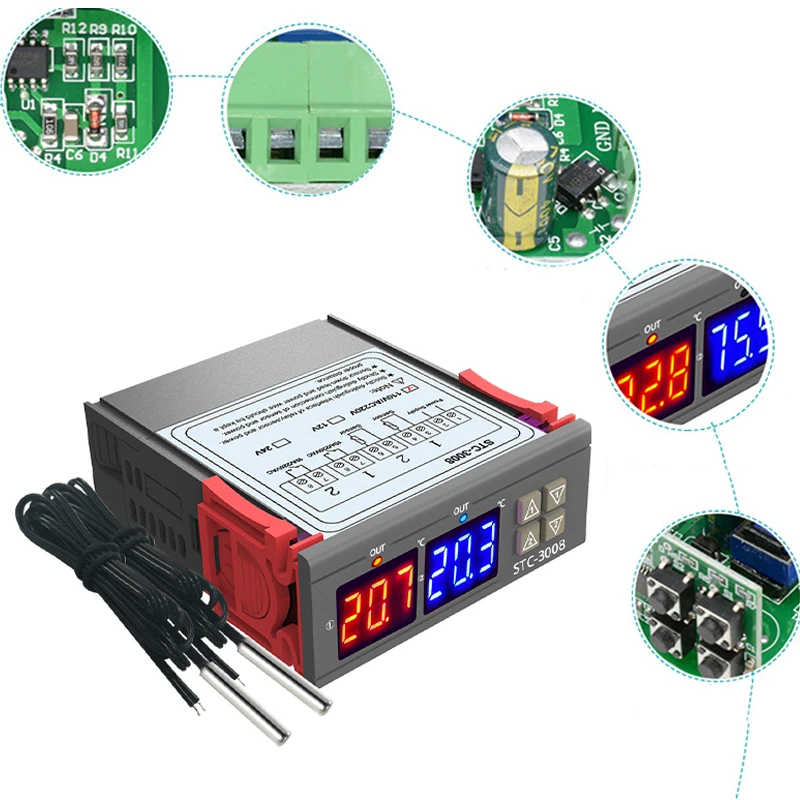 <Двойной дисплей: микрокомпьютер интеллектуальный цифровой дисплей термостат, двойной дисплей двойной температуры.