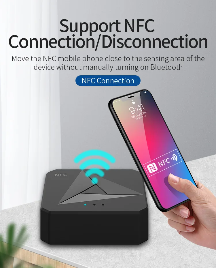 Built-in chip, you can directly connect to NFC mobile phone or other NFC bluetooth enabled device by touching this receiver