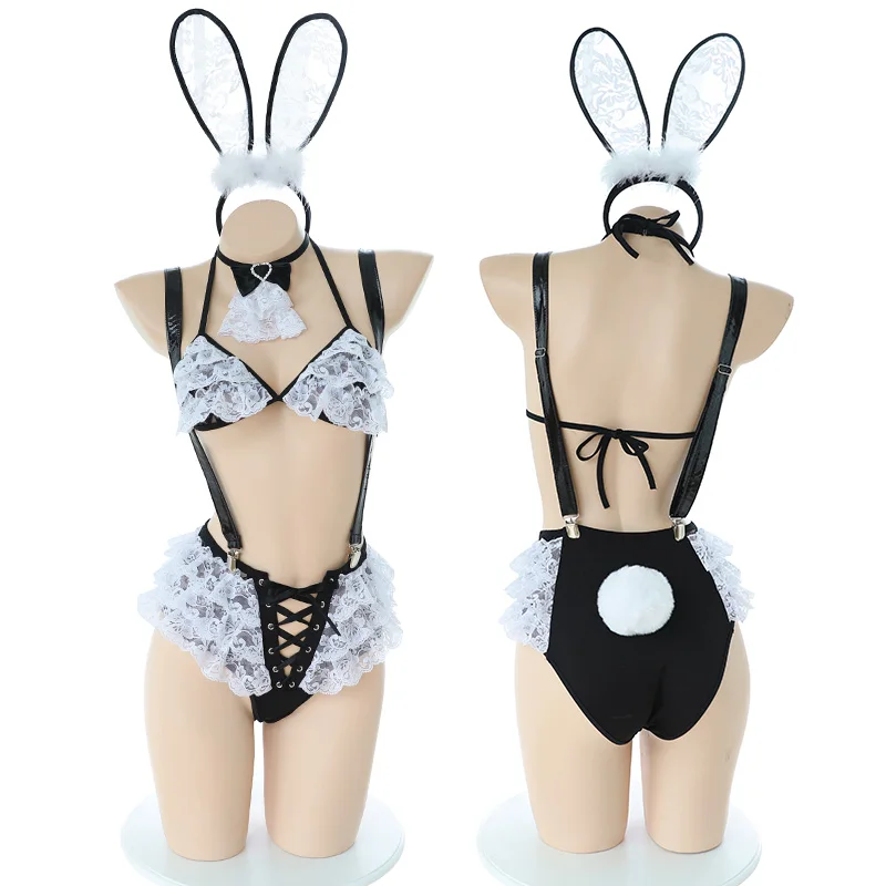 Посылка включает в себя: повязка для волос + галстук-бабочка + бюстгальтер + 2 * подтяжки + трусики