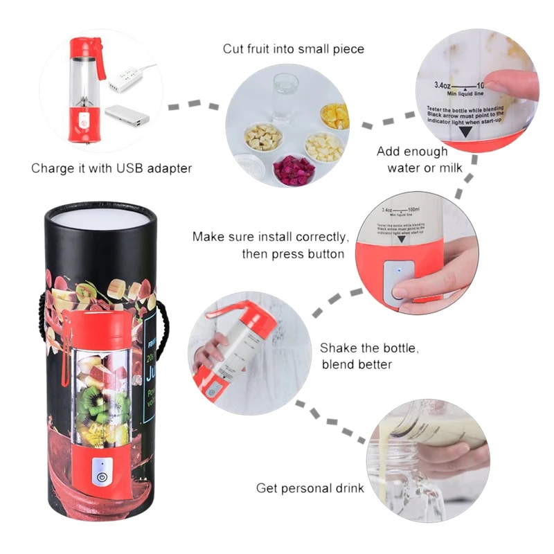 Более удобный: электрическая портативная соковыжималка оснащена мини-корпусом и USB перезаряжаемыми батареями, подходит для прогулок, путешествий, покупок и любых других мест, которые вы хотите