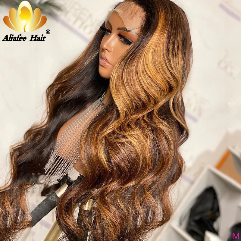 Highlight Wig Ombre Color Brown Honey Blonde Body Wave Wig Lace Closure Wig 4x4 Malaysian Human Hair Wigs 150% Density For Women