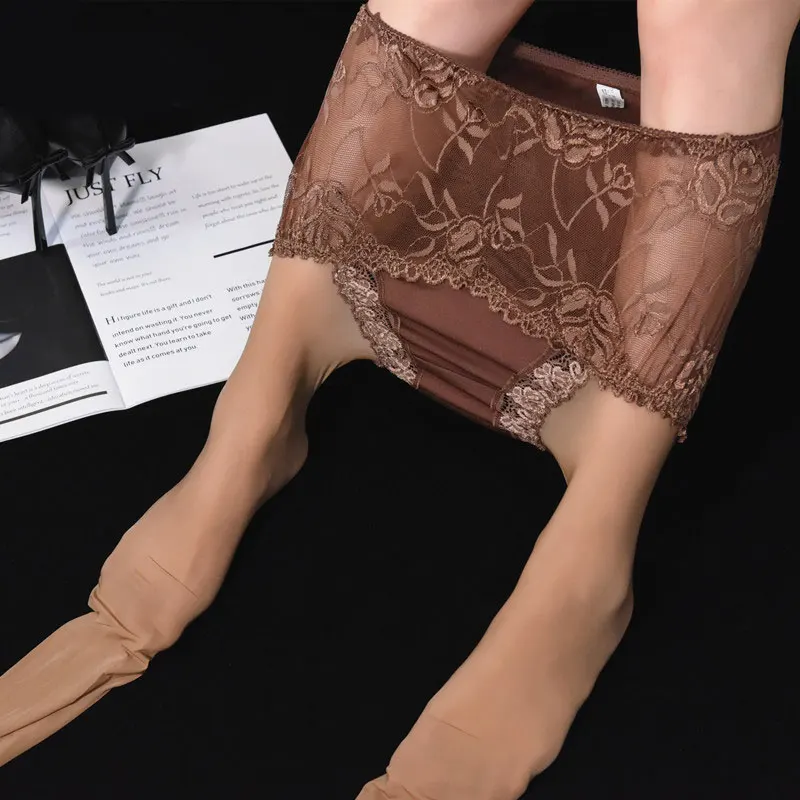Сексуальные блестящие кружевные чулки больших размеров, гладкие колготки с открытой промежностью, прозрачные глянцевые колготки, нижнее белье 2 в 1