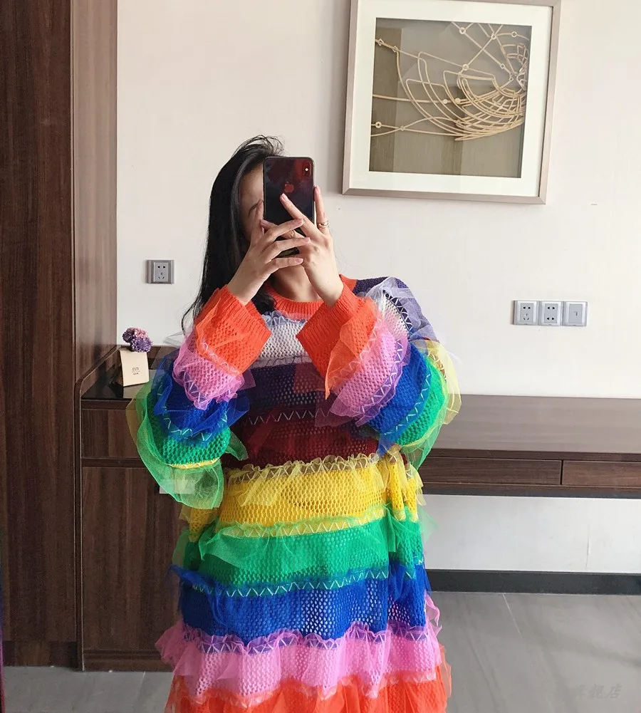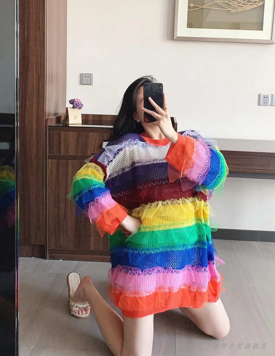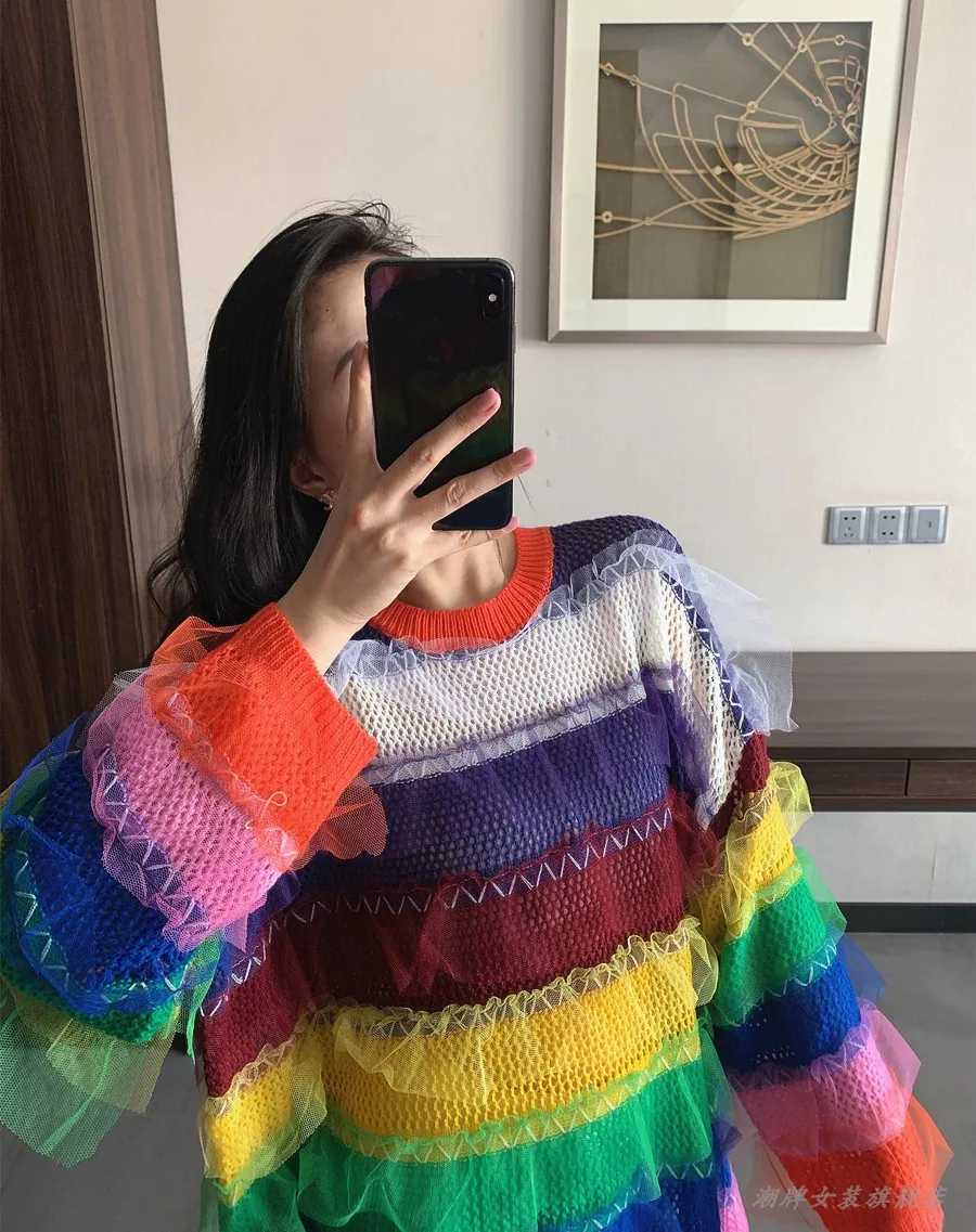 Женский вязаный свитер, сетчатый пуловер в стиле пэчворк, ZQY4984