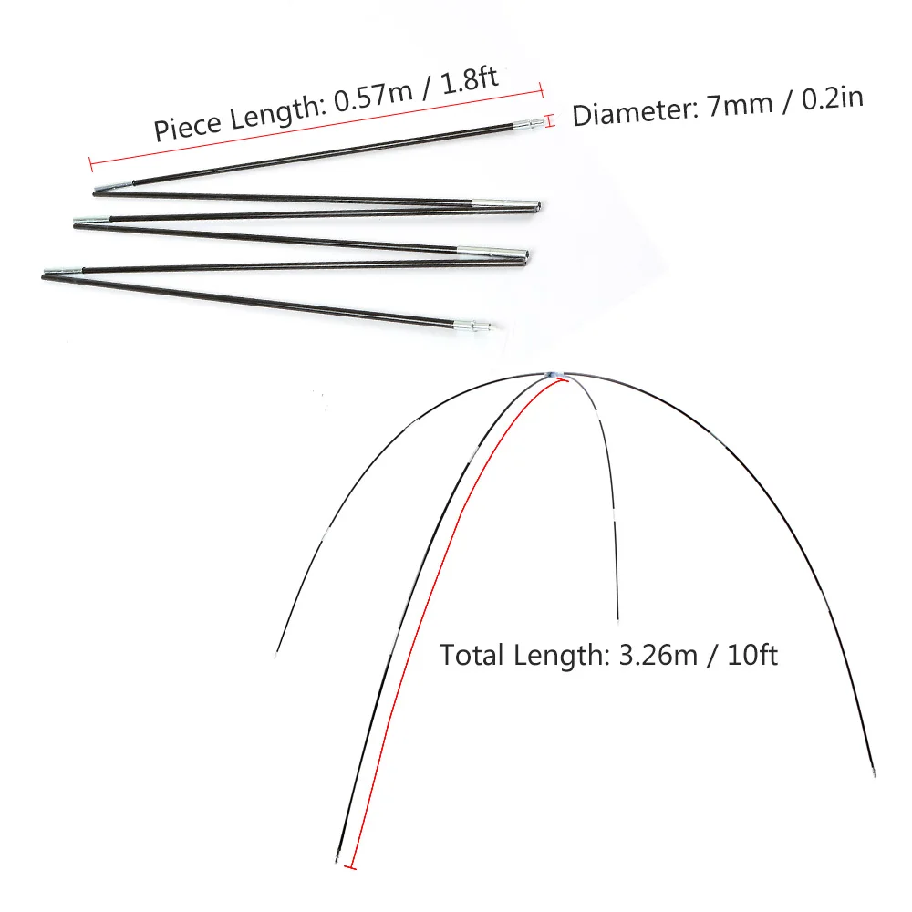 Этот комплект для палатки изготовлен изСтеклоВолокно, прочное и антикоррозийное, нелегко сломать. С растягивающейся струной для соединения каждой части стержня, простой дизайн, легко собирается и разбирается.