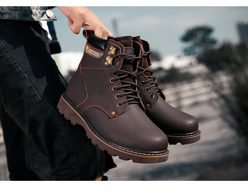 Модные мужские осенние ботинки в стиле милитари замшевые до щиколотки на толстой