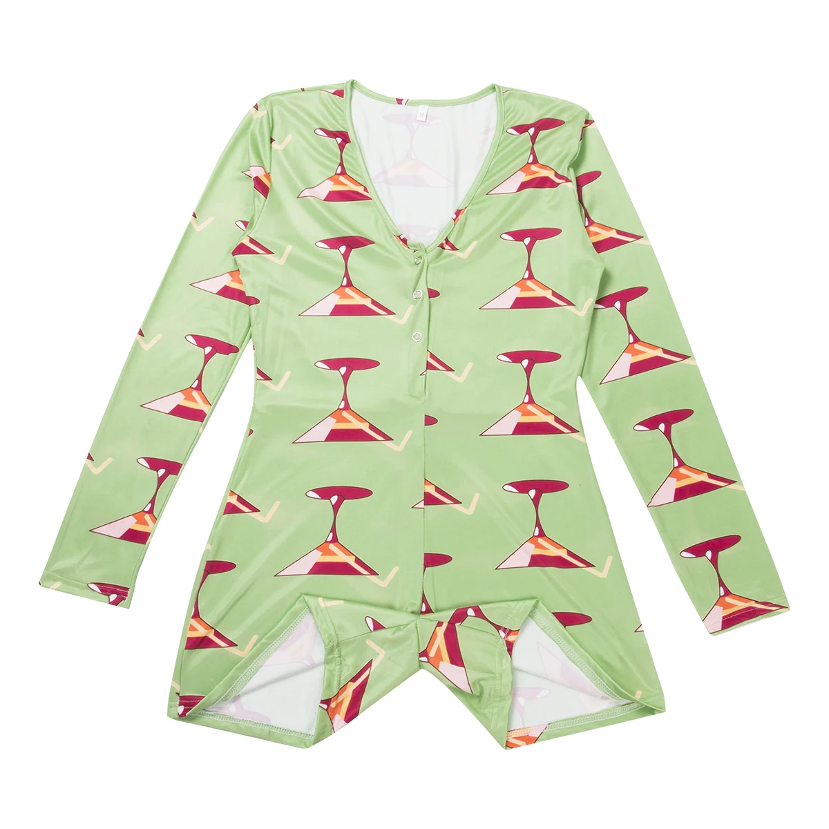 Женская пижама, ночная рубашка с глубоким v-образным вырезом и длинным рукавом, Модный облегающий эластичный купальник на пуговицах, короткий комбинезон, комбинезон