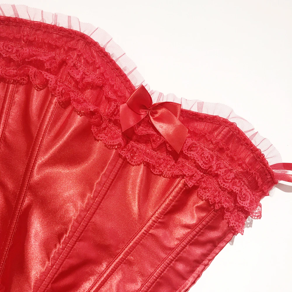 Готовы к Бурлеск ночь, эта великолепная корсет Overbust в стиле бурлеск и юбка-пачка, комплект является идеальным сочетанием сладкий и сексуальную привлекательность. Маленькие волнистые и Божьи изгибы-это компоненты, которые добавляют специй и осыпания этому соблазнительному костюму. Особенности: задняя скромная панель, гофрированные края, шнуровка сзади и склеивание. Юбка-пачка продается вместе.